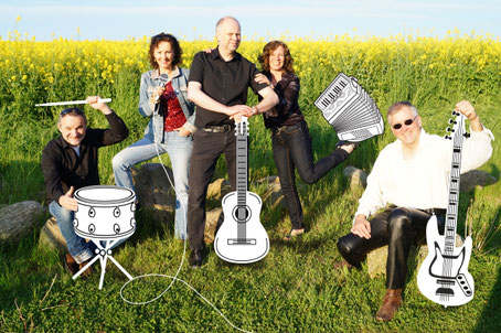 Unterstützt wird sie am Akkordeon von Hella Matzen-Lembcke, an der akustischen Gitarre von Erk Böteführ, am Bass von Ronald Kowalewski und am Schlagzeug von Markus Zell. Diese Musiker haben in der norddeutschen Musikszene in den vielen Jahren ihres Wirkens Fußabdrücke hinterlassen und stehen für große spielerische und kompositorische Qualität.